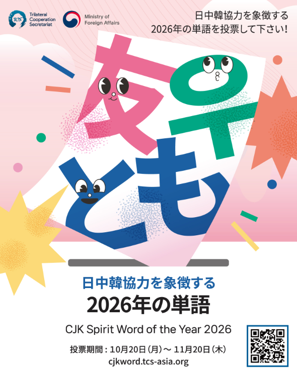 【🇰🇷日中韓三国協力事務局(TCS)】シリーズ「「2026年の単語」オンライン投票キャンペーン」(2025/10/24) 日中韓の若者が「共に創る未来」を象徴する言葉を選ぶオンラインキャンペーンです。