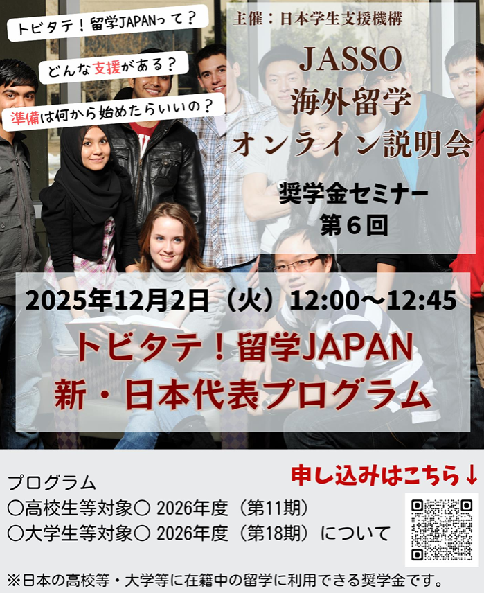 本イベントでは、大阪・東京の対面会場にて、トビタテ!留学JAPAN 新・日本代表プログラム(海外留学支援制度)の募集説明会(来夏以降派遣)も開催します。